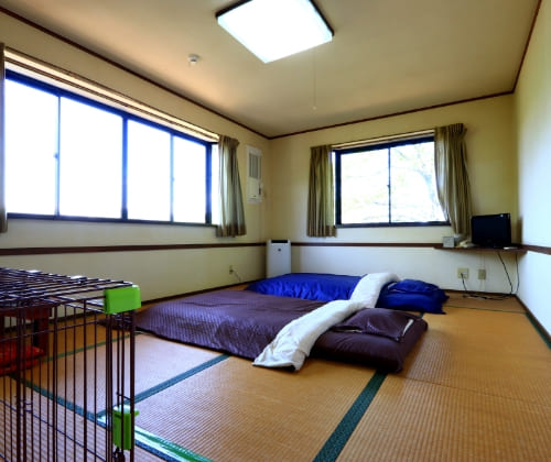 さまざまな広さをお部屋をご用意した、ペット専用棟です。ペットと一緒に泊まりたい方専用なので、安心してご利用いただけます。建物の裏には専用のドッグランも整備しておりますので、自由にご利用ください。